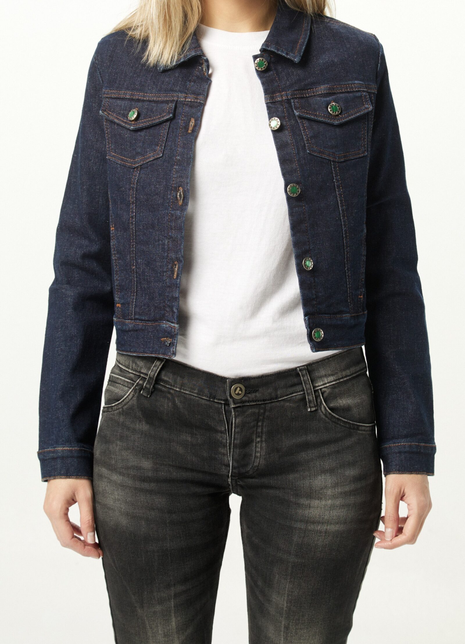 Teñido índigo + sulfuro intenso, permite llegar a distintos tonos de azules, con matices grisáceos.